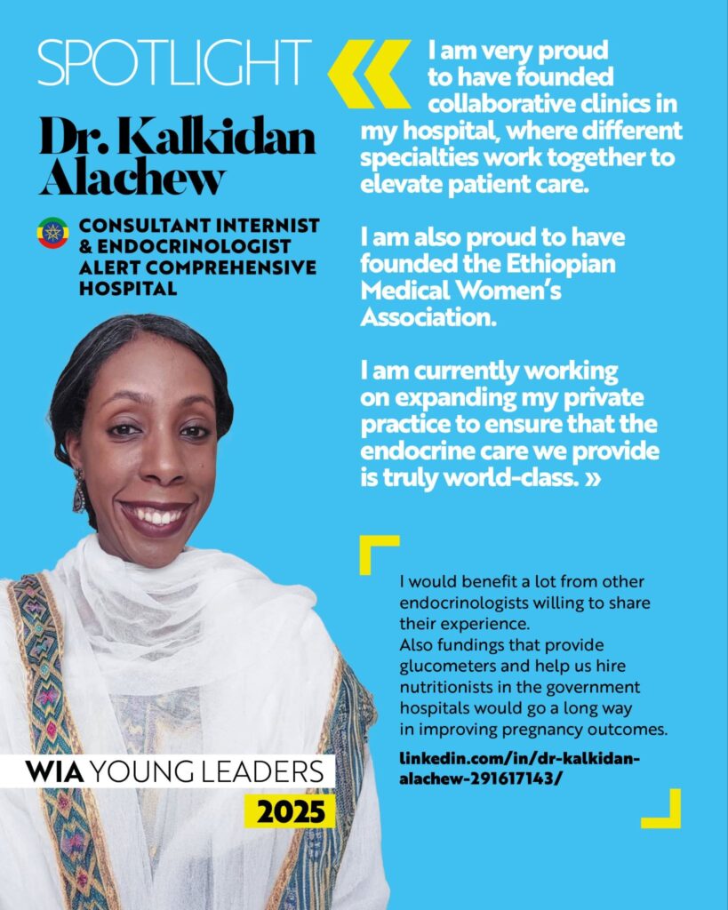 On this week’s edition of spotlighting our Young Leader, we have Dr. Kalkidan Alachew, a distinguished Ethiopian medical doctor and health leader whose career reflects passion, innovation, and a deep commitment to transforming healthcare delivery for women and communities across Africa.