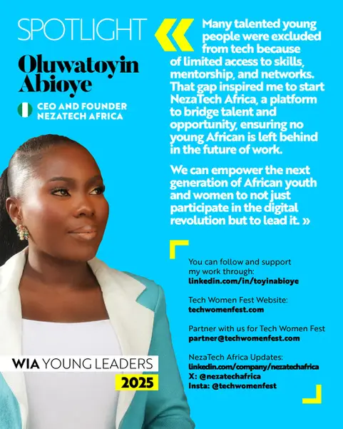 I am Oluwatoyin Abioyé, a product leader, global tech mentor, and social impact entrepreneur. I have worked extensively across Fintech, SaaS, and EdTech, helping to build products that solve real problems and transform lives. At the heart of everything I do is a passion for equipping Africa’s youth and women with the tools to thrive in technology and innovation.Through my role as Founder of NezaTech Africa, I lead a mission to prepare Africa’s young people for the future of work by bridging the gap between talent and opportunity. I am also the convener of Tech Women Fest, a pan-African festival that amplifies the voices of women in technology while inspiring the next generation of girls to pursue careers in STEM and entrepreneurship.