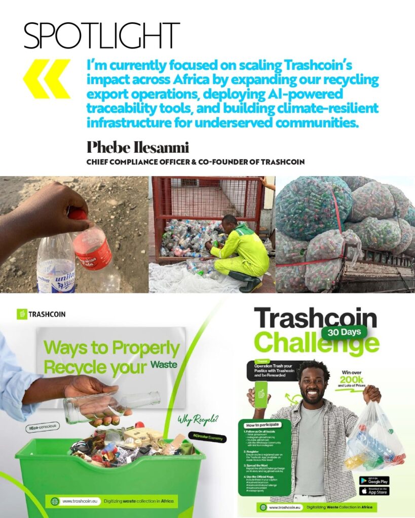 This week, we shine the spotlight on Phebe Ilesanmi, a sustainability advocate and Co-Founder of Trashcoin, an eco fintech startup transforming Africa’s informal waste economy into a dignified and inclusive system. From grassroots communities in Nigeria to global stages like COP29 and the UN Summit of the Future, Phebe is on a mission to turn environmental challenges into opportunities for social and economic empowerment.